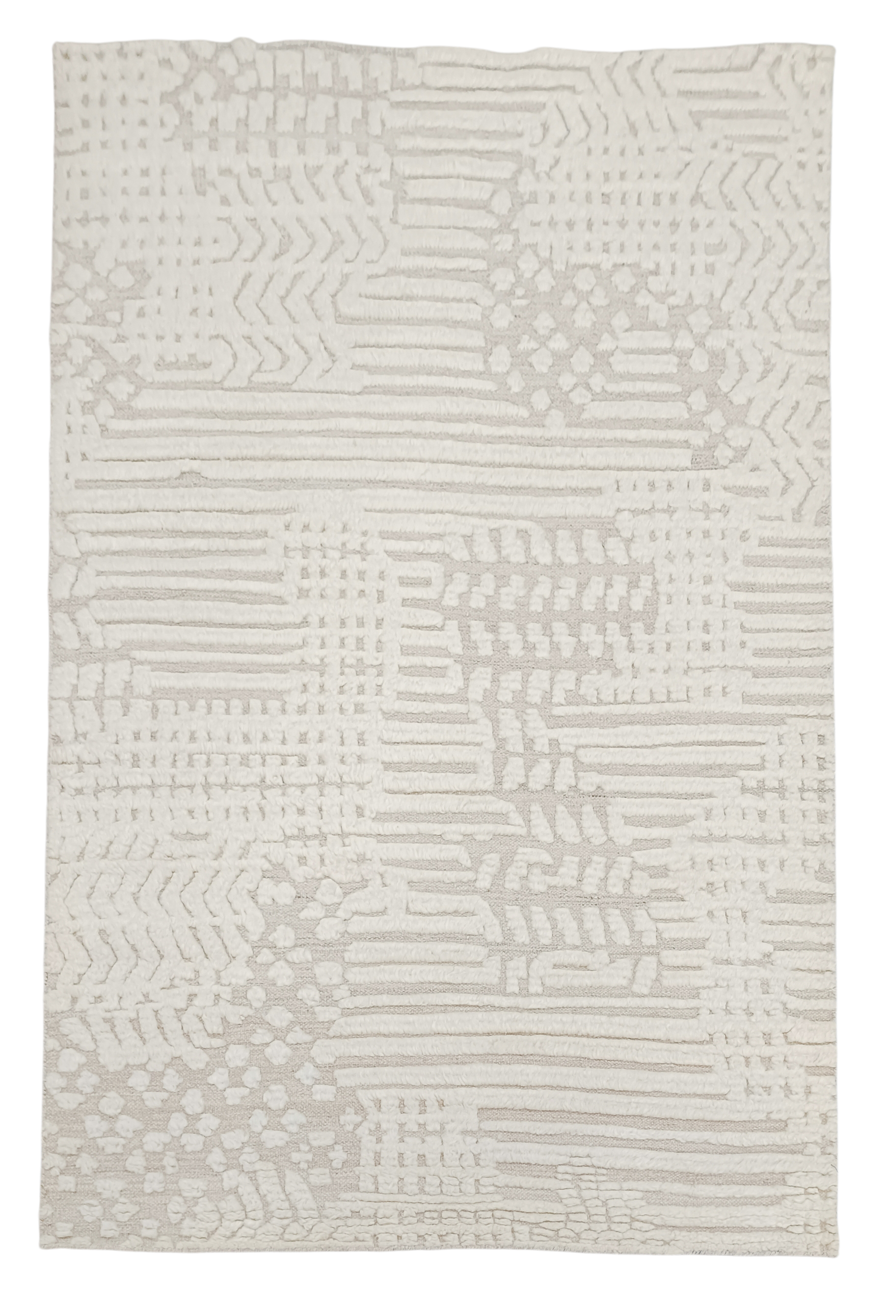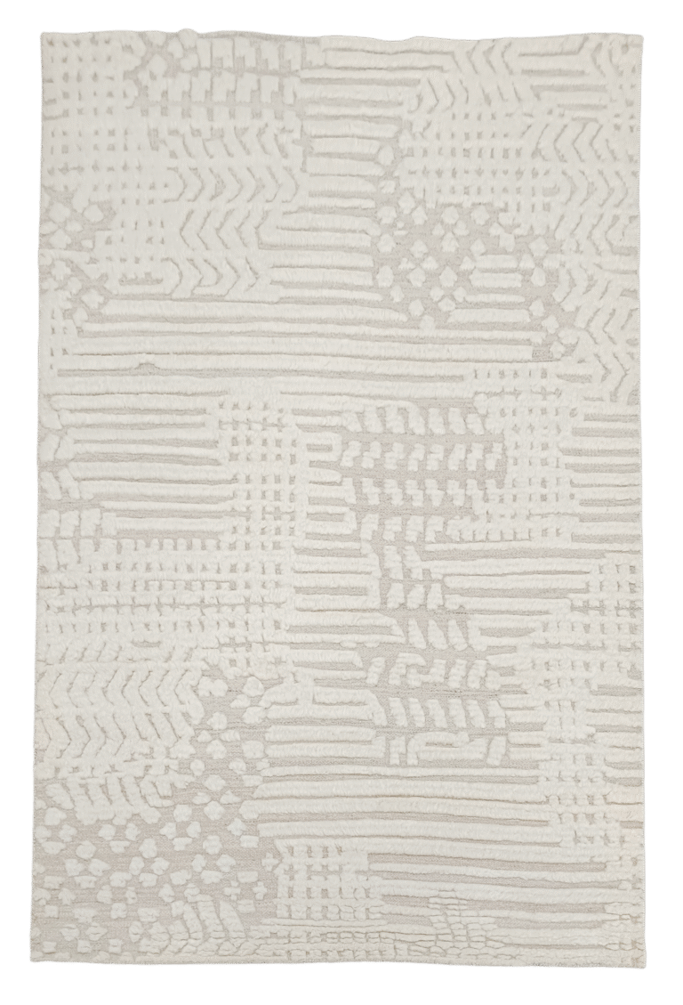From the The Light collection, Path of Remembrance embodies the soul’s turning back to its Lord. Hand-knotted in Bhadohi by 18 artisans, the design carries a rhythmic geometry that recalls the beads of dhikr — each line a whispered remembrance, each textured rise and fall a step closer to peace. The undyed natural wool holds the purity of creation, while subtle tonal contrasts invite a quiet pause in the heart.